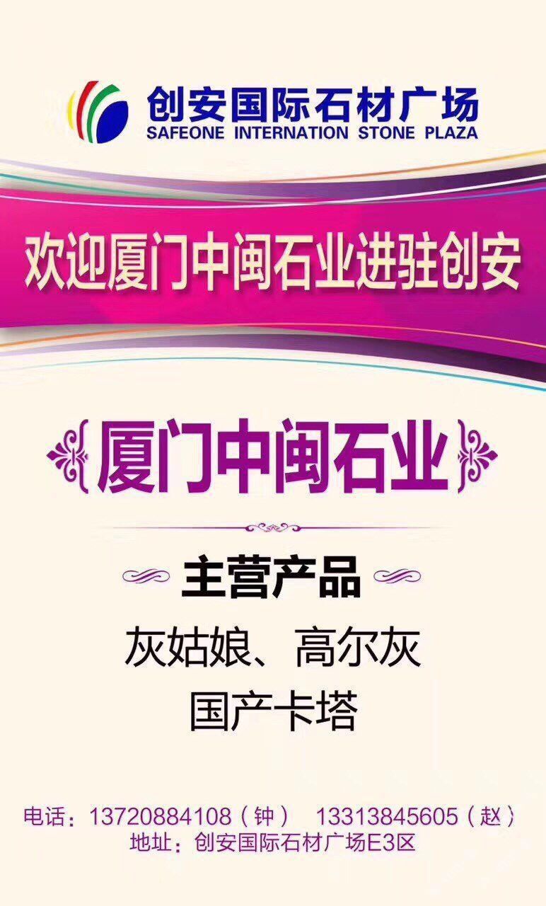 中閩實(shí)業(yè)集礦山開(kāi)采,大板銷售,工程板(規(guī)格板)加工銷售,一條龍的石材企業(yè),公司自成立以來(lái),通過(guò)專心,專注,專業(yè)的企業(yè)精神,服務(wù)于國(guó)內(nèi)外客戶,目前主營(yíng)品種:雅柏白(灰),卡塔白,高爾灰,灰姑娘,新黑白根等,聯(lián)系人:趙先生,??:13313845605,工廠地址:延平大道115號(hào)佳磊石材