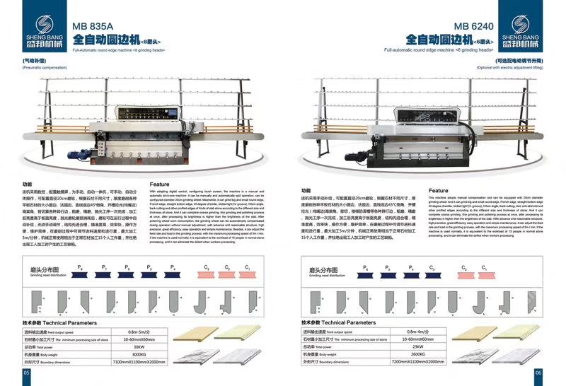 公司主營:‘’全自動數(shù)控圓邊機(jī)、全自動數(shù)控地腳線機(jī),多功能直邊倒角機(jī)’‘全自動直邊倒角機(jī)‘’全自動臥式磨邊機(jī)’也可根據(jù)客戶需求定制各種全自動石材加工機(jī)械!磨邊機(jī)、拋光機(jī)合二為一,粗磨、精磨、拋光一次完成,拋光后效果高于板面光潔度!拋光磨輪磨損消耗后,磨輪可在運(yùn)行過程中自動補(bǔ)償,無須手動調(diào)節(jié),不會產(chǎn)生手工操作中出現(xiàn)的工藝缺陷!結(jié)構(gòu)先進(jìn)合理!精準(zhǔn)度高,效率快,操作方便!維護(hù)簡單快捷! 盛邦機(jī)械團(tuán)隊(duì)期待與您攜手并進(jìn),為您降低加工成本,創(chuàng)造財(cái)富!使用我司全自動磨邊拋光機(jī)械成本每米:人造石每天按工作8小時計(jì)算,一分鐘可磨4米,8小時可磨1920米,每米成本0.4元,大理石8小時可磨1300米,每米成本0.6元,花崗巖8小時可磨9百多米,一分鐘可磨2米,每米成本0.8元,(成本含水電費(fèi),人工,磨輪損耗等) 操作簡便,雜工即可,精準(zhǔn)度高,無工藝缺陷,售后維護(hù)方便,簡單。歡迎到水頭鎮(zhèn)弘泰機(jī)械C區(qū)2號來考察試機(jī)。聯(lián)系人:方經(jīng)理18016666181