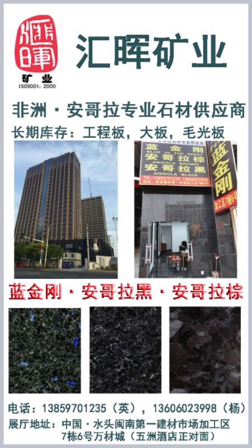 本公司主營藍(lán)金剛,安哥拉黑,安哥拉棕,藍(lán)月亮,承接大型工地,展廳地址:建材市場(chǎng)加工區(qū)7棟6號(hào)