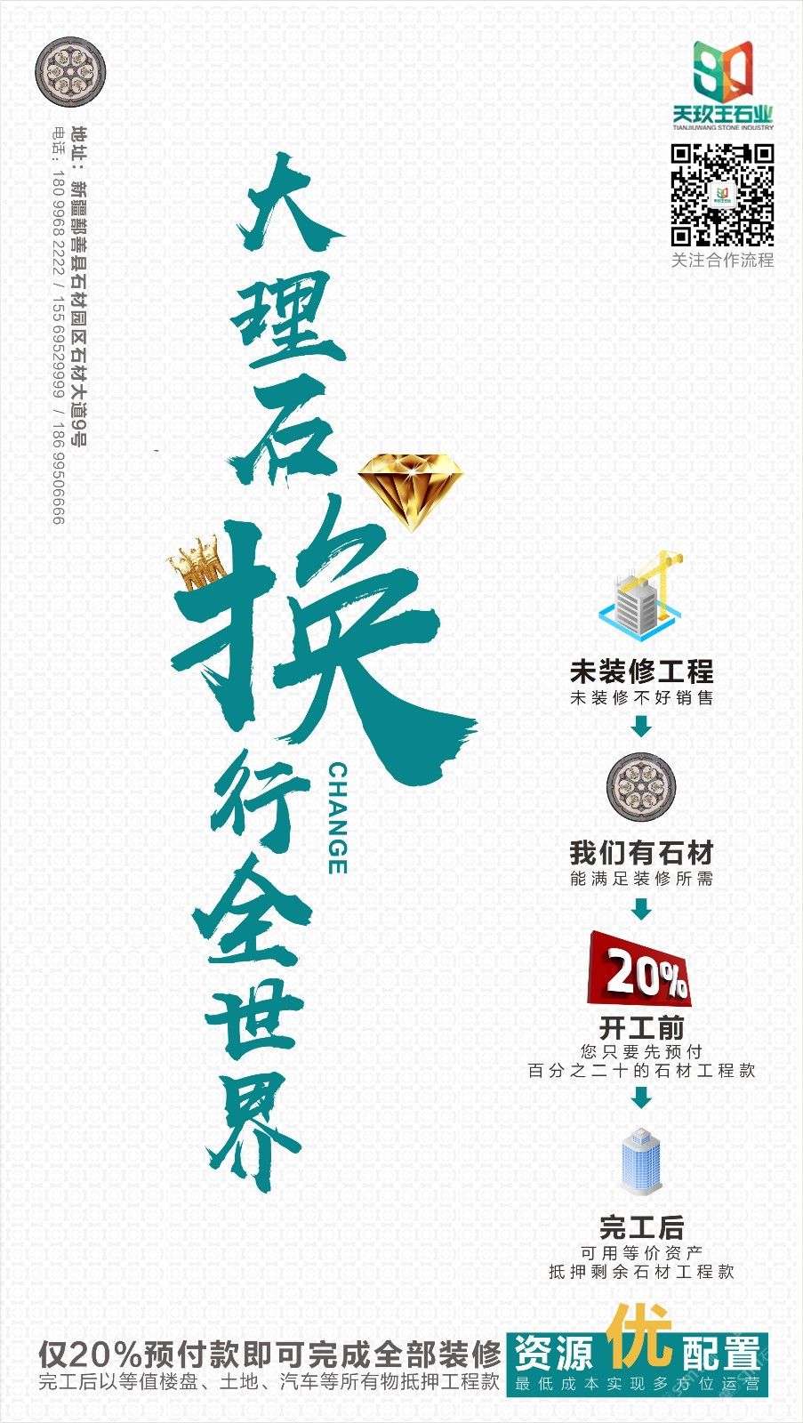 新疆天玖王石業(yè)股份有限公司,坐落于鄯善石材工業(yè)園區(qū),注冊資金1億元,以礦山開發(fā)、石材加工與銷售、建筑裝飾材料銷售和貨物與技術(shù)進出口貿(mào)易為主營業(yè)務,是中國規(guī)模較大的大理石生產(chǎn)加工企業(yè)。