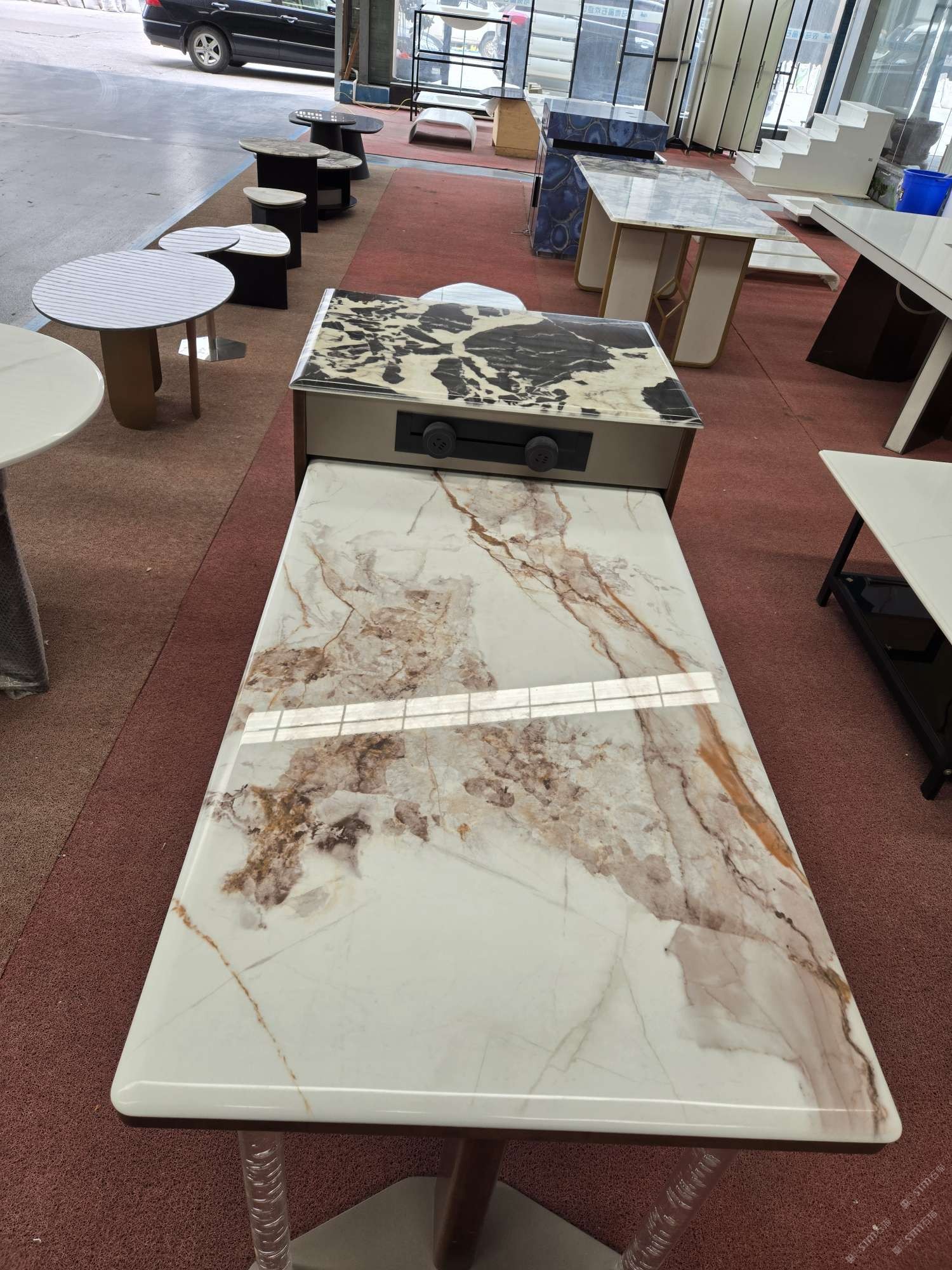 公司配有大板批發(fā)專(zhuān)場(chǎng),同時(shí)擁有大型精加工廠(chǎng)房,其中各類(lèi)加工器械完備,加工微晶石的工藝配套6000平方場(chǎng)地,并擁有建材行業(yè)各路精英成員。