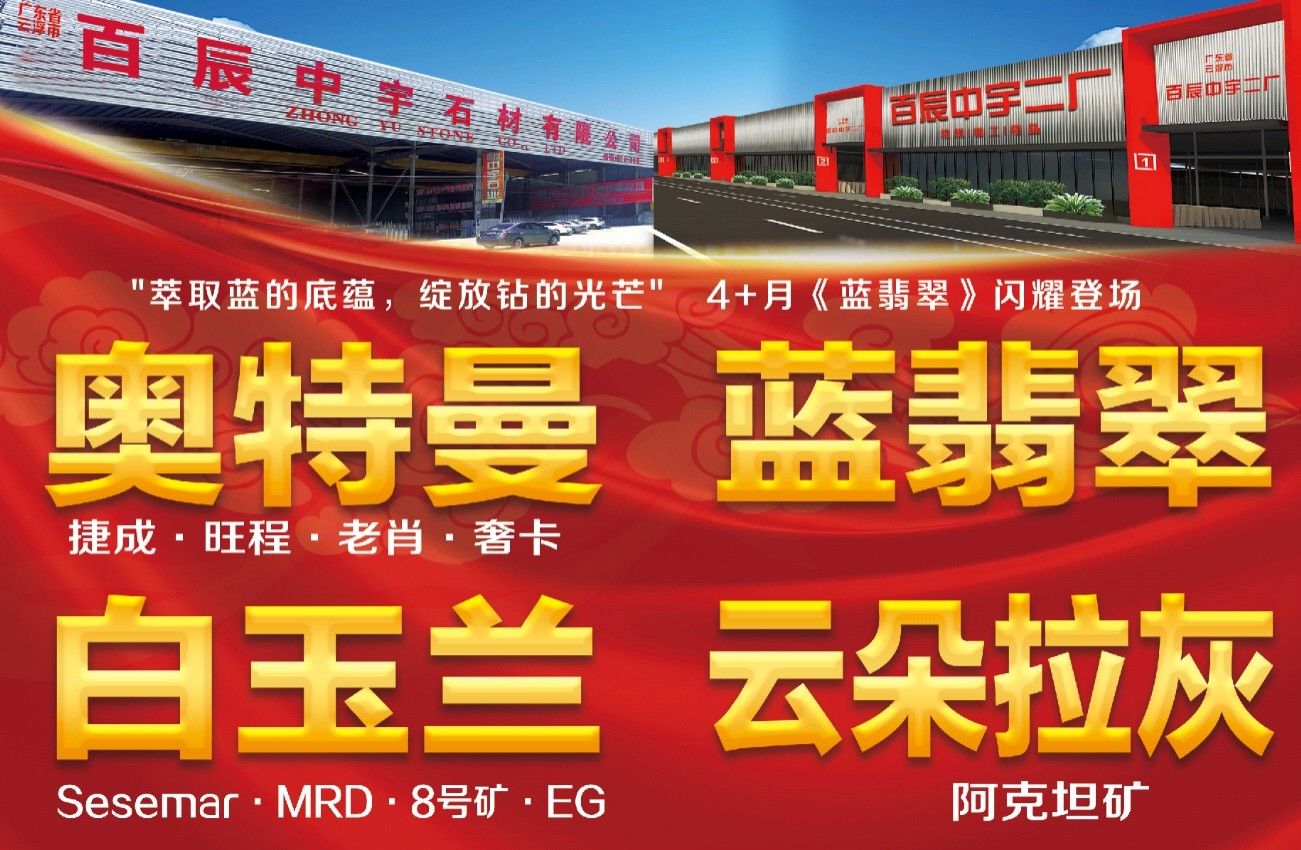 百辰中宇石業(yè)有限公司:源于2010年,至2018年擁有云浮河口工廠、水頭永泉山一廠和水頭福山工業(yè)區(qū)百辰中宇二廠??傆?jì)17臺(tái)切機(jī),5臺(tái)線鋸,4臺(tái)立體烘干線,5臺(tái)磨機(jī)。年產(chǎn)量可達(dá)到160萬(wàn)平起。