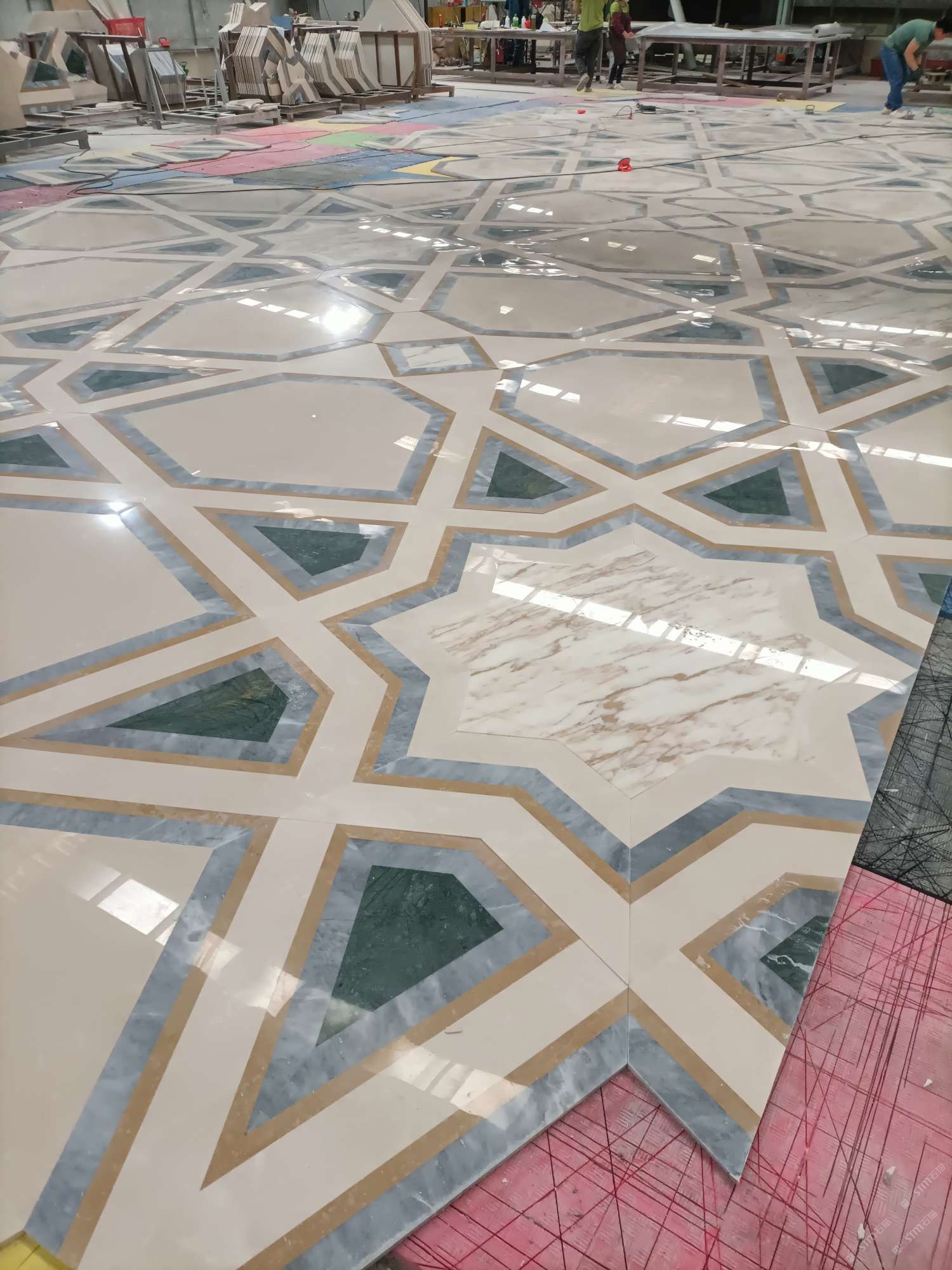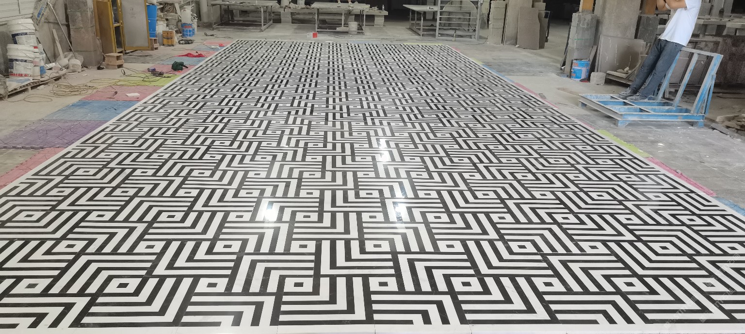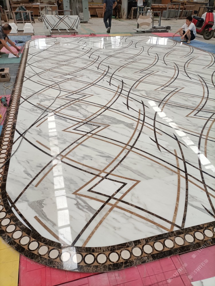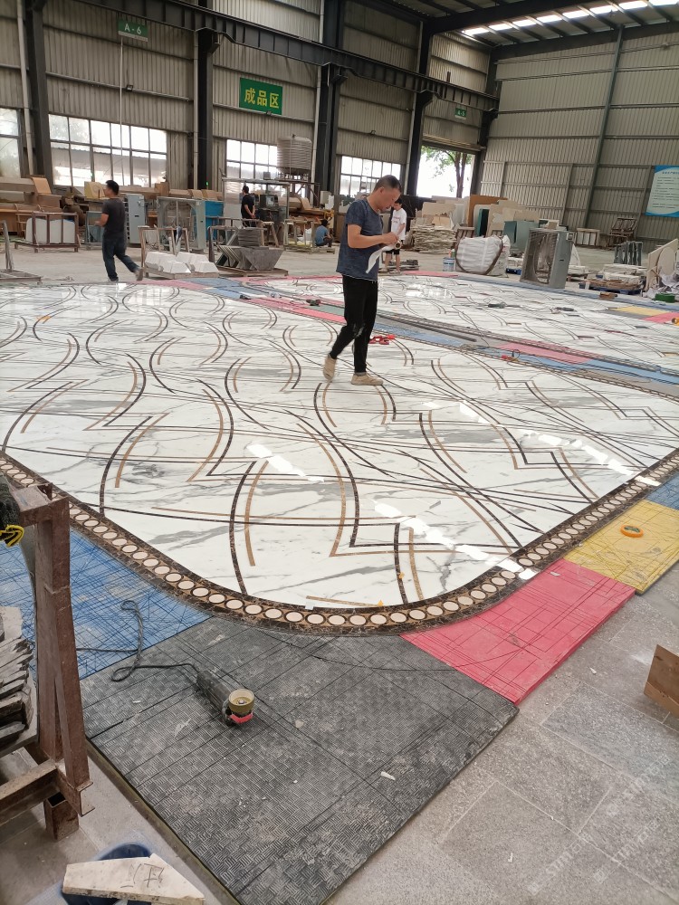 公司水刀拼花生產(chǎn)線:擁有6臺(tái)大型水刀設(shè)備,拼花年產(chǎn)量達(dá)10000多平方米。水刀師傅從業(yè)時(shí)間久,誠信務(wù)實(shí),質(zhì)量好!所生產(chǎn)的工藝拼圖暢銷全國及世界各地,是別墅建筑至善至美的選擇。