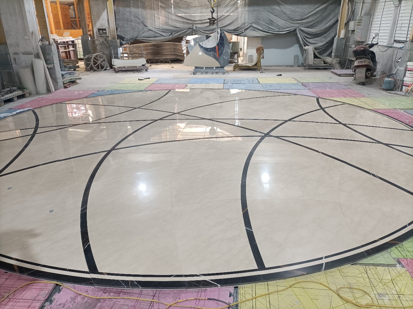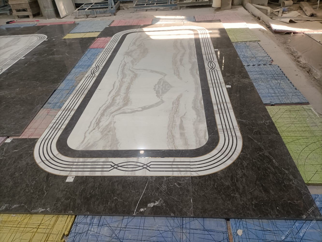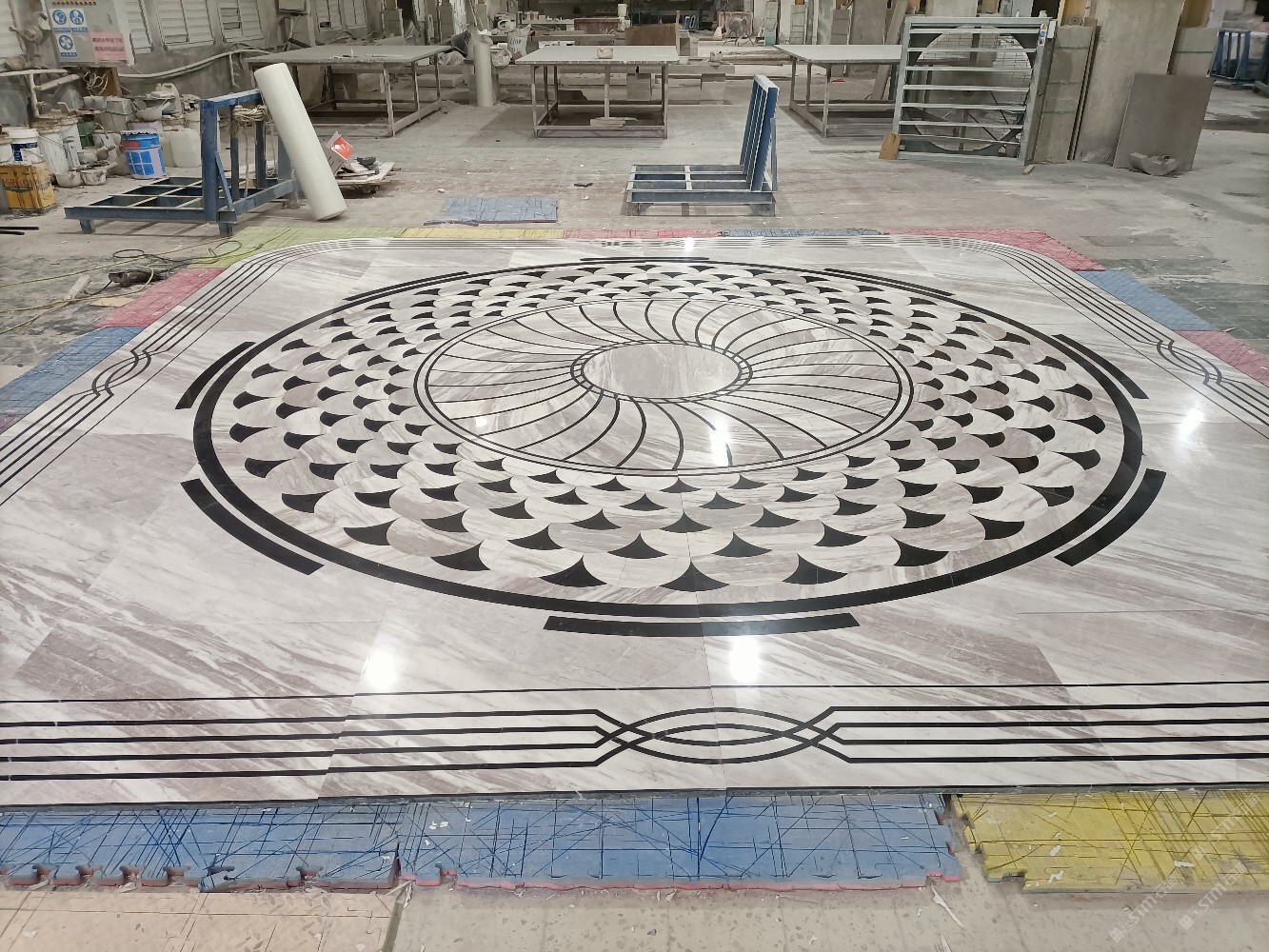 公司水刀拼花生產(chǎn)線:擁有6臺(tái)大型水刀設(shè)備,拼花年產(chǎn)量達(dá)10000多平方米。水刀師傅從業(yè)時(shí)間久,誠信務(wù)實(shí),質(zhì)量好!所生產(chǎn)的工藝拼圖暢銷全國及世界各地,是別墅建筑至善至美的選擇。