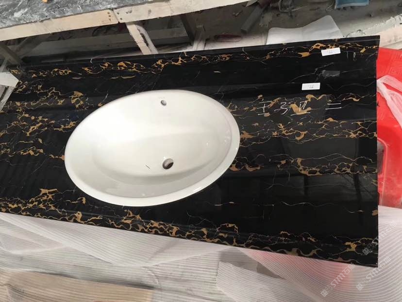 意大利黑金花洗手臺 上下盆
