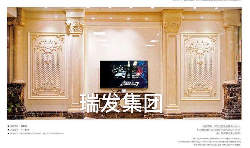 發(fā)布信息: 瑞發(fā)集團(tuán)背景墻,圓柱線條,旋轉(zhuǎn)樓梯,水刀拼花,雕刻