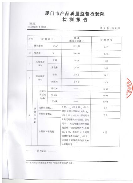 亞欣石材卡紋灰冰島灰檢測報告