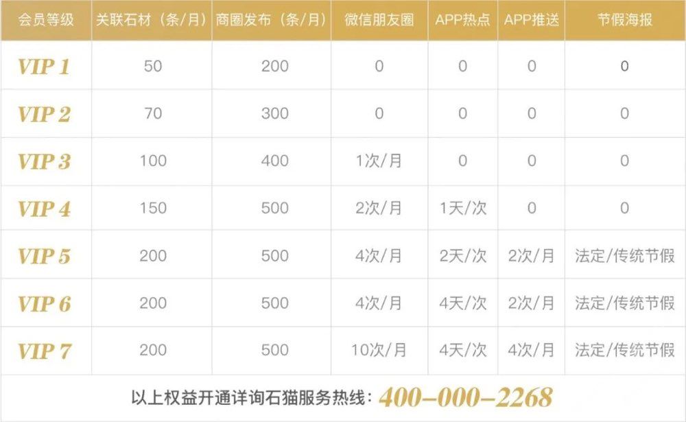 VIP1-VIP7會員增值服務明細表