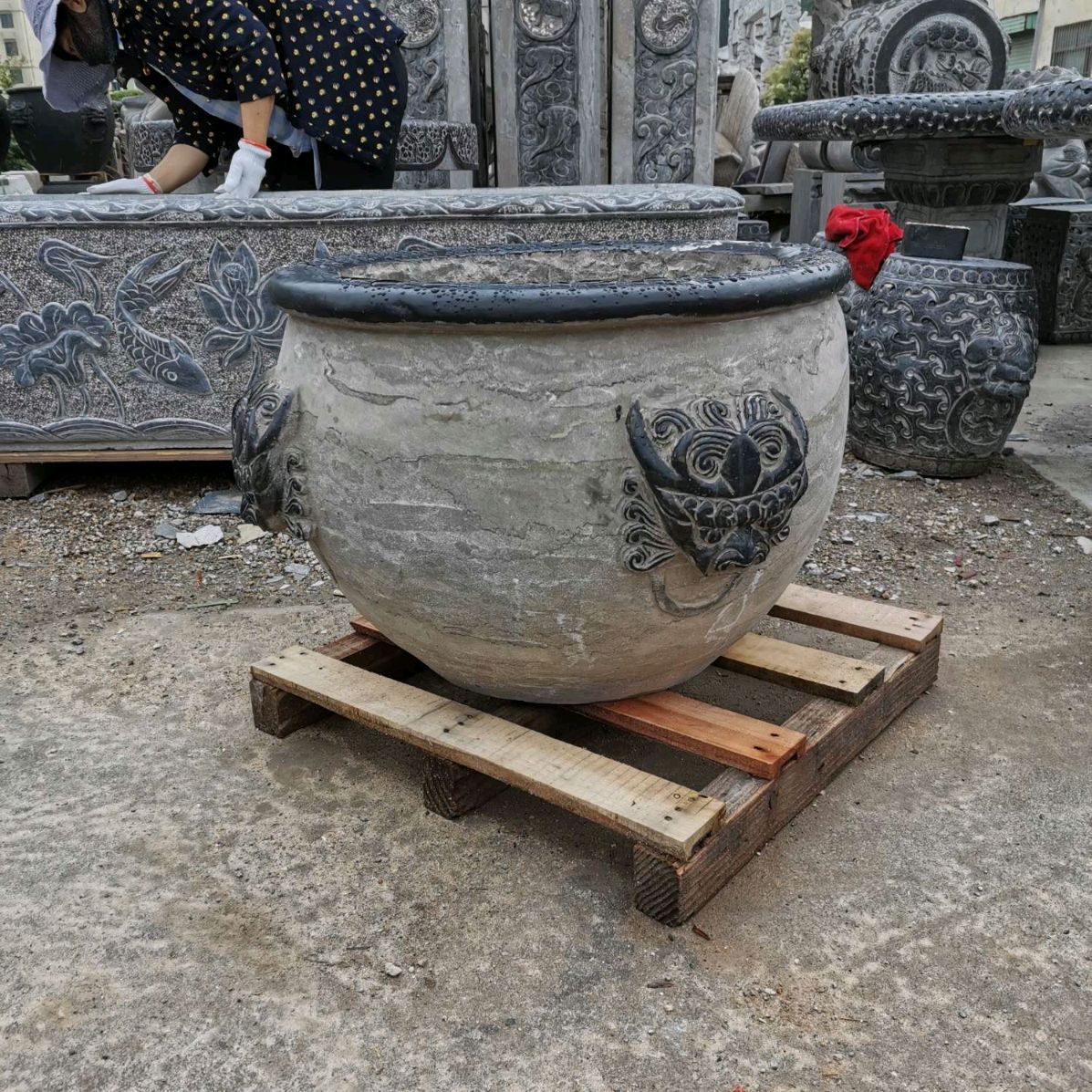 商圈 > 石雕 > 仿古青石魚缸聚寶盆,青石仿古石雕