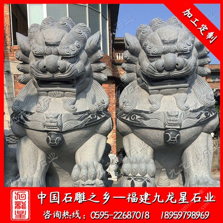 發(fā)布信息: 九龍星石業(yè)是石雕獅子廠家,從事石雕獅子加工制作20多年,石雕獅子款式多樣,價格合理。石雕獅子材質(zhì)可以為花崗巖、大理石、漢白玉、青石等等,望廣大新老客戶前來參觀考察和選購。 石雕獅子顧名思義就是有石材雕刻而成的石雕獅子,石刻石獅子寓意很多,深受人們喜歡,民間流傳石雕獅子的寓意都很吉祥。 傳統(tǒng)石雕獅子作為中國傳統(tǒng)建筑中經(jīng)常使用的一種裝飾物,人們喜愛將它擺放在家門口,有的獨(dú)立的獅子把門,有的放在門枕石上,有的與石鼓結(jié)合在一起。石雕獅千姿百態(tài),造型靈活。自唐代以來的大型石雕獅子基本上保持統(tǒng)一的坐姿,與漢代獅子石像常有的匍匐姿態(tài)相比,更接近于休憩而非狩獵,反映出唐代時期生活的富足、社會的安定,以及整個社會尤其是統(tǒng)治階級追求安逸、享樂的心態(tài)。大型石雕獅子有3米石獅子、2.8米石獅子也有2米石獅子。