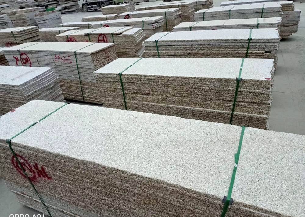 黃銹石荒料處理。可切路沿石。的料