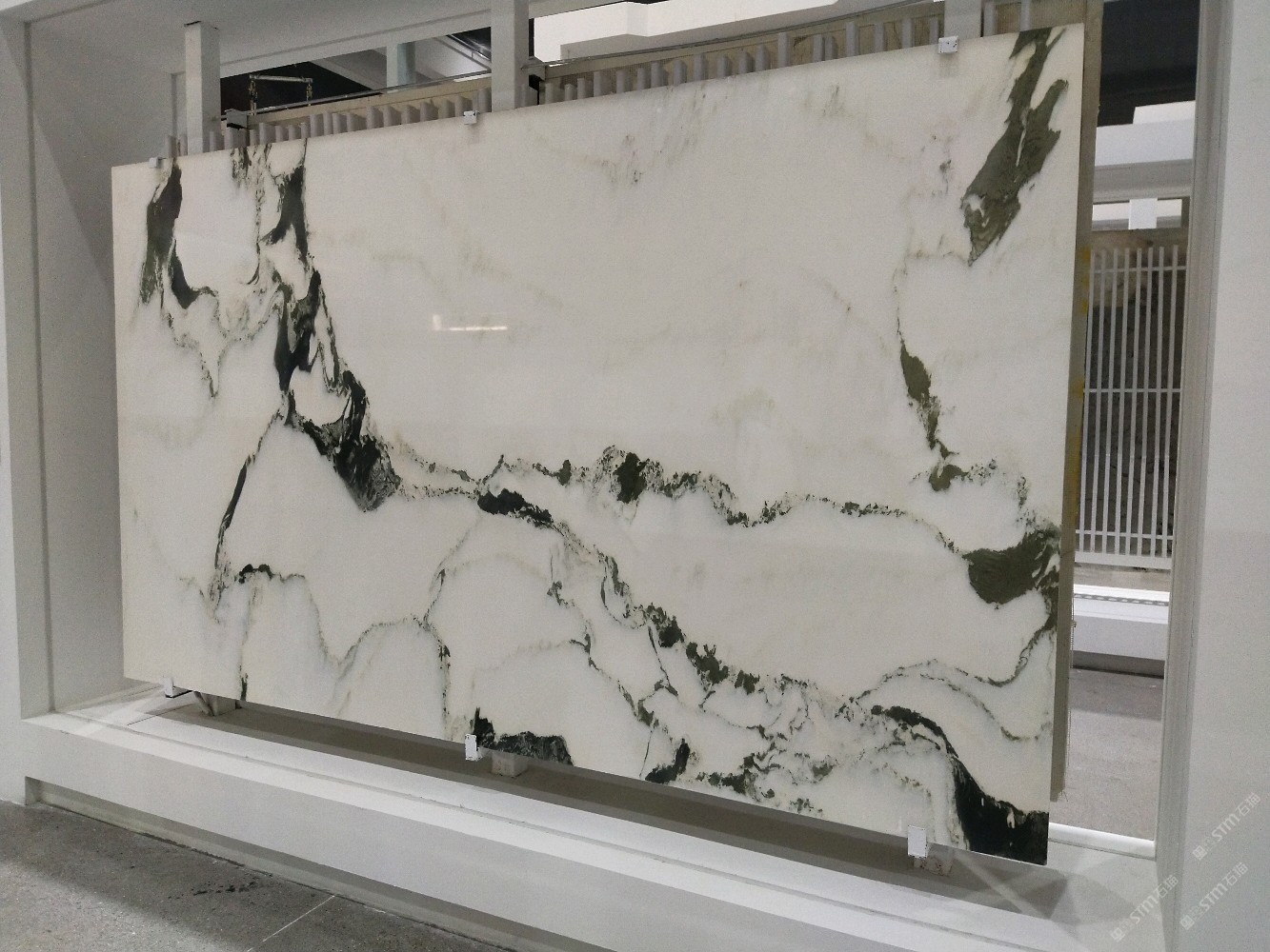 新正大奢石館[奢石品牌]山水畫背景墻。