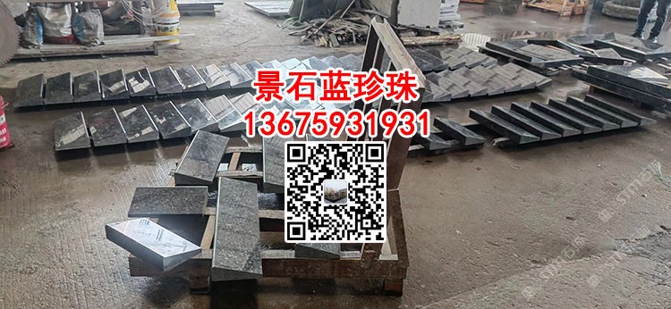藍珍珠花崗巖光面壓頂石水景石來圖加工定制藍鉆藍眼睛