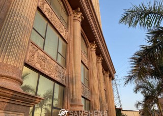 石井銹石柱子皮圓柱皮弧形板石井蝦紅石材黃銹石黃金麻