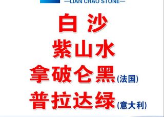 聯(lián)超石業(yè)主營產(chǎn)品:白沙(光面),白沙米黃,白沙米黃(中細沙),紫山水,普拉達綠,拿破侖黑(法國),寶格麗黑(法國)企業(yè)地址:福建泉州水頭鎮(zhèn)澳盛2號門1棟4區(qū)