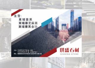 琪盛石材主營產(chǎn)品:柬埔寨芝麻黑,金鉆黑,英國棕(LEE礦),世貿(mào)金麻1,加州金麻1,綠星,印度蘭1,安哥拉棕,安哥拉黑,皇室啡,紫點金麻(現(xiàn)代金麻)反切面,幻彩紫,金鉆麻,烏克蘭幻影藍(lán),加多利2,桂林紅,木瑪麗,黑金沙,藍(lán)鉆(挪威)企業(yè)地址:福建泉州石井鎮(zhèn)后店石材工業(yè)區(qū)二路