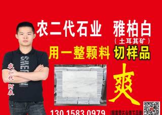 農(nóng)二代石業(yè)主營(yíng)產(chǎn)品:雅柏白(雅高礦),雅柏白(TK礦),雅柏白(灰),雅柏白2,雅柏白,雅柏白1,雅柏白4,雅柏白(BY-1-A),小魚肚白,雅柏白(雅柏灰)企業(yè)地址:福建泉州南安寶榮石錦記
