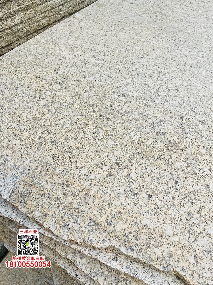隨州黃金麻石材-隨州白麻花崗巖-光面黃金麻-燒面黃金麻-荔枝面黃金麻-光面白麻-燒面白麻-荔枝面白麻 隨縣三和石業(yè) 劉經(jīng)理 18100550054(微信同號)專業(yè)隨州黃金麻/白麻供應商廠家,工廠位于隨州石材工業(yè)園;專注于別墅幕墻干掛工程及園林地鋪石材加工,實力工廠,廠礦一體;主營:隨州黃金麻、隨州白麻、湖北黃金麻、湖北白麻、黃銹石、白銹石、黃色麻石、白色麻石、光面黃金麻、燒面黃金麻、荔枝面黃金麻等花崗巖;同等品質基地批發(fā)價格更低,隨縣三和石業(yè)有限公司歡迎你來電溝通洽談業(yè)務!